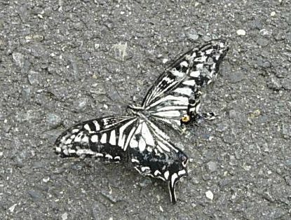 死んだ夏蝶は、道ばたすれすれに吹くかすかな風を集めて、羽根を震わせていました。
