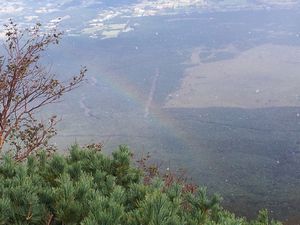 四合目までくだると下界は晴れておりまして、あたかも私メを慰めてくれるように虹がかかっているのでありました。