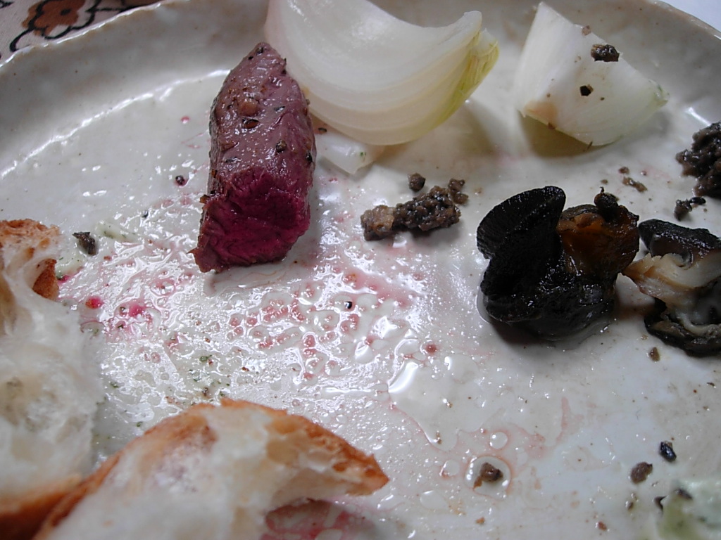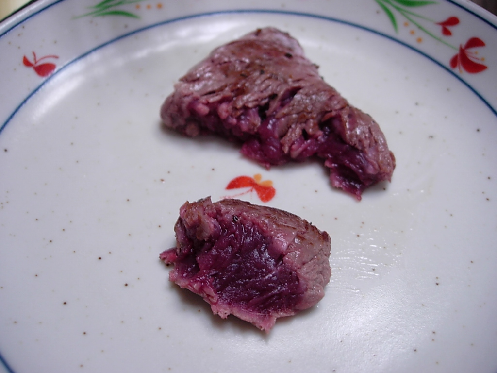 さくりとナイフを入れますと、それこそ赤ワイン色のレアがいやらしく現れまして、ホッといたします。