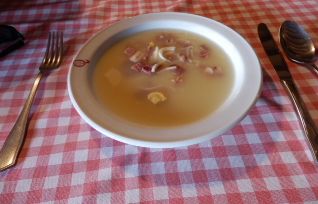 素朴といえば素朴、素材を活かしているといわれれば、その通りなのでありますが、ニンニクがスープに溶けているだけで、しかし、何かが足りないお味なのであります。