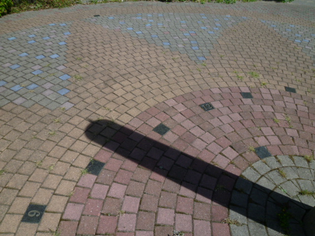 影が落ちるところに、9時と12時の文字が刻まれたレンガが埋め込まれておりました。