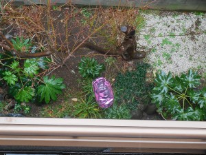 と、同時に、この風船が、庭に舞い降りたいきさつをも想像するのでございます。