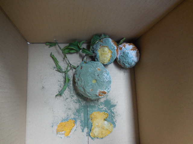 おお、冬至のお風呂用として取っていた柚子がカビだらけとなっておりました。