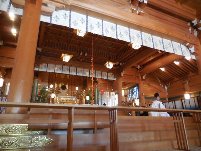 白い上着を与えられ、口をそそぎ手を清めまして、社殿へと通されるのであります。