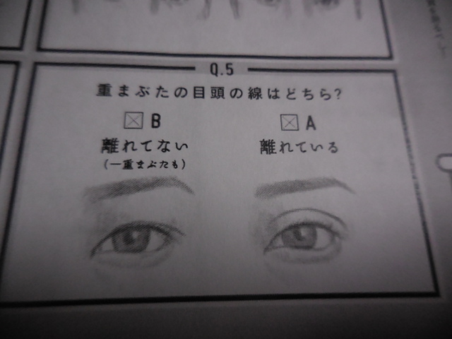 二重瞼が目頭で離れているお女性と、そうでないお女性の性情の違いなどをいくつか挙げて、それを点数化して、最後に男との相性へと関連付ける、私メの特異な手法でございます。