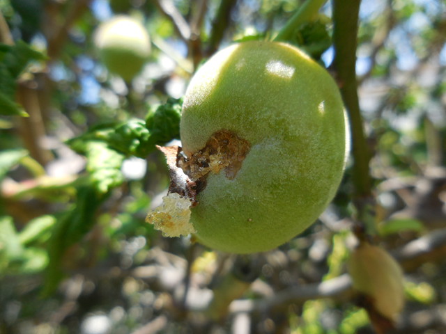 ほーら、春先に人々の目を留めた梅の花は、見事な実をつけております。