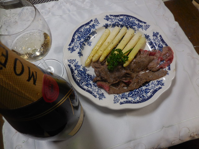 粘膜を目覚めさせるようなシャンパンの刺激と、夏の初夏の香りが広がるアスパラガスの噛みごたえ。