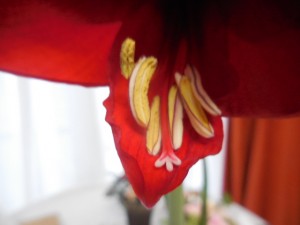 朝は蕾でしたのに、お昼に見たら、アマリリスの花が咲いていたのでありました。