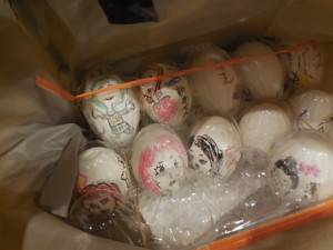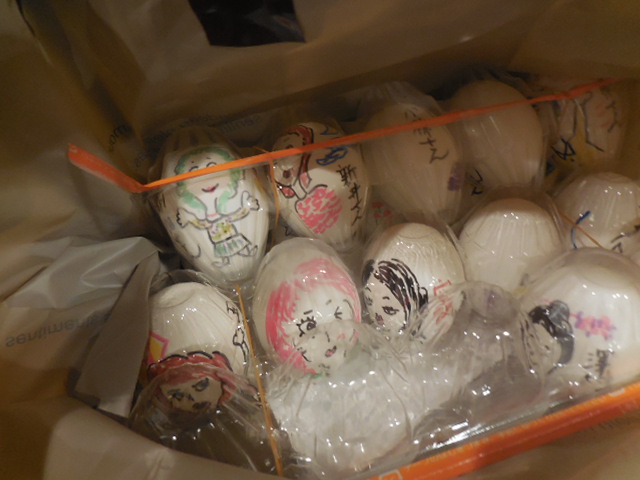 前夜に酔眼をこすりつつ、受講生の似顔絵のゆで卵づくりをしてたのでありました。