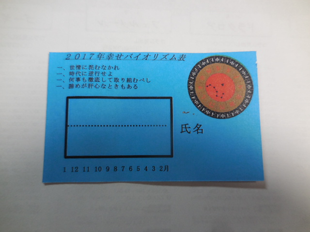 裏側には、私メが手書きで、一年間のバイオリズムを書きこみ、それをラミネート加工するのでございます。