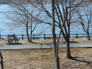 フロントガラス越しに見送りました。