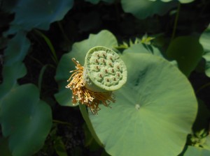 その蓮も散り、残骸が青々と迎えてくれたのでありました。