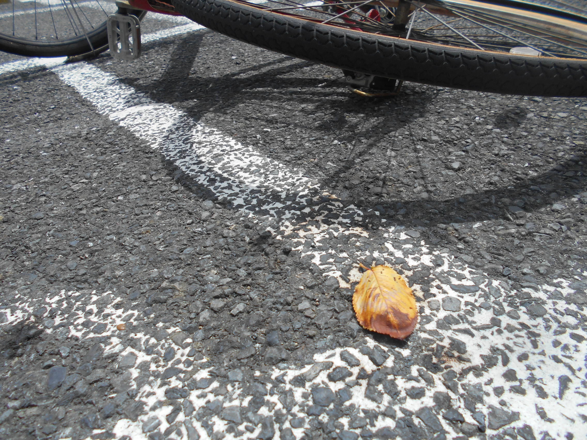 他人の自転車のわきの病葉。