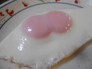 目玉焼きにしようとフライパンに落とした卵が双子。