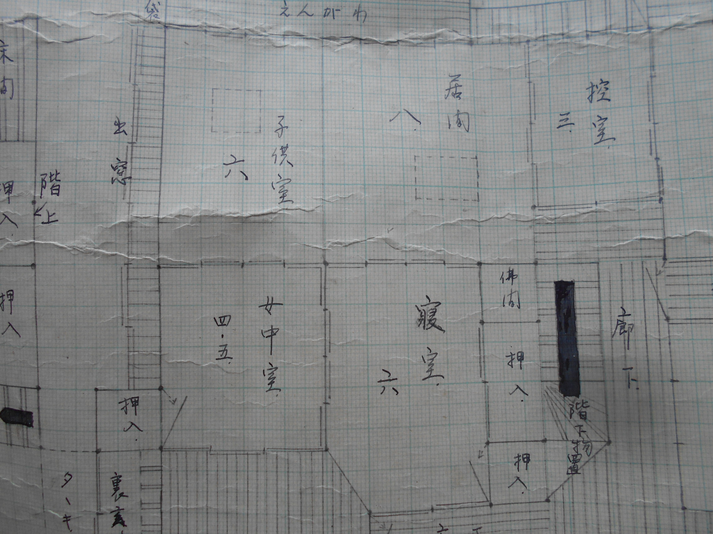 実家の客間の違い棚の物入の奥から、手書きの図面が出てまいりました。