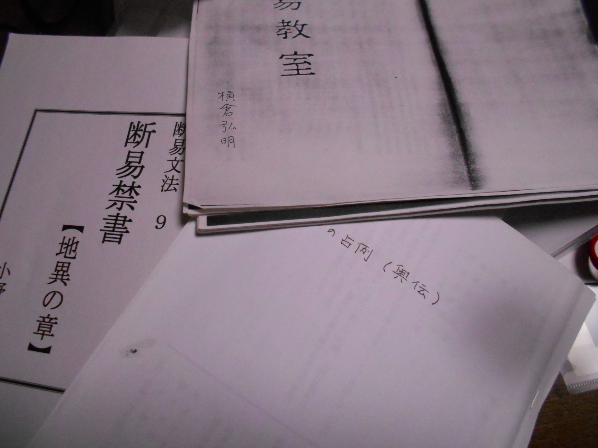 画像の右上にあるのが、鷲尾先生の師匠の横倉先生の残した「断易教室」の原稿。