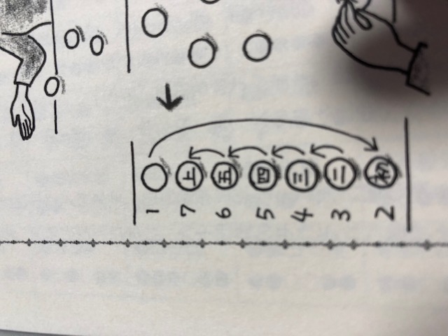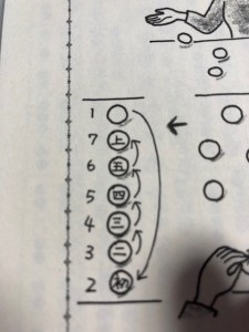 そーしてから、初を下に、その上に二、三、四、五、上と並べるだけ。