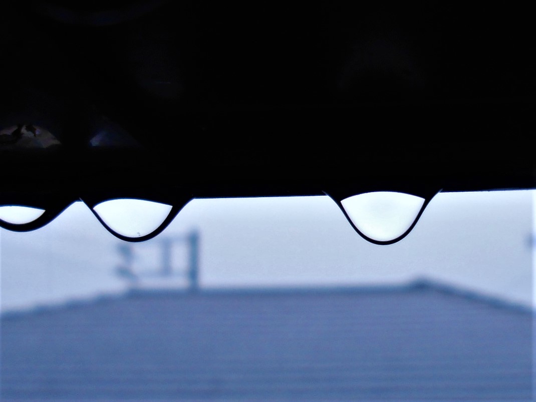 お女性の嘘の涙のよーな雨の滴がベランダの手すりに揺れながらたまり、音もなく滴り落ち、またたまるという繰り返し。青空の心配がなく空は陰鬱、やはりお女性のお尻のよーな冷やっこい気温。
