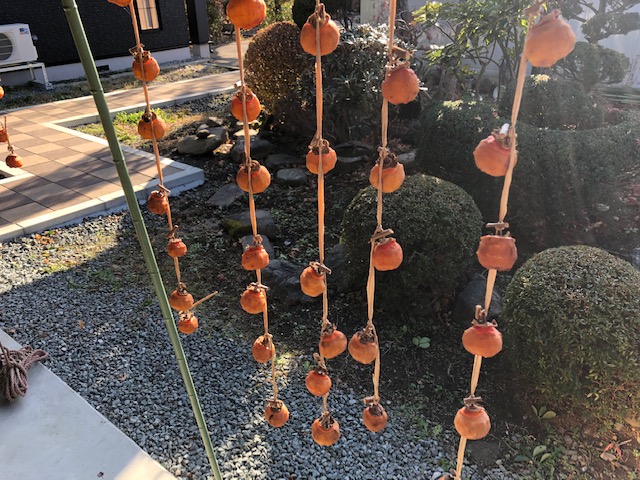 老母は私メのいないことをイイ事に、ボクのお庭に干し柿を吊るしていたのであります。