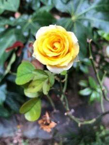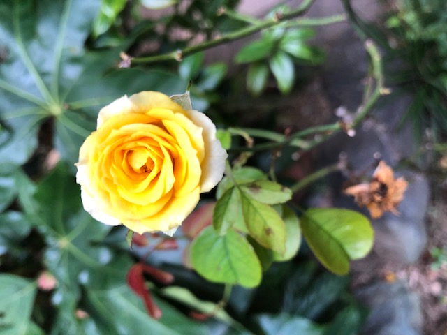 まわりの草花はホトンド枯れたしまっているのに、バラは、まるでいまが青春であるみたいにみずみずしい黄色をひからせておりますです。