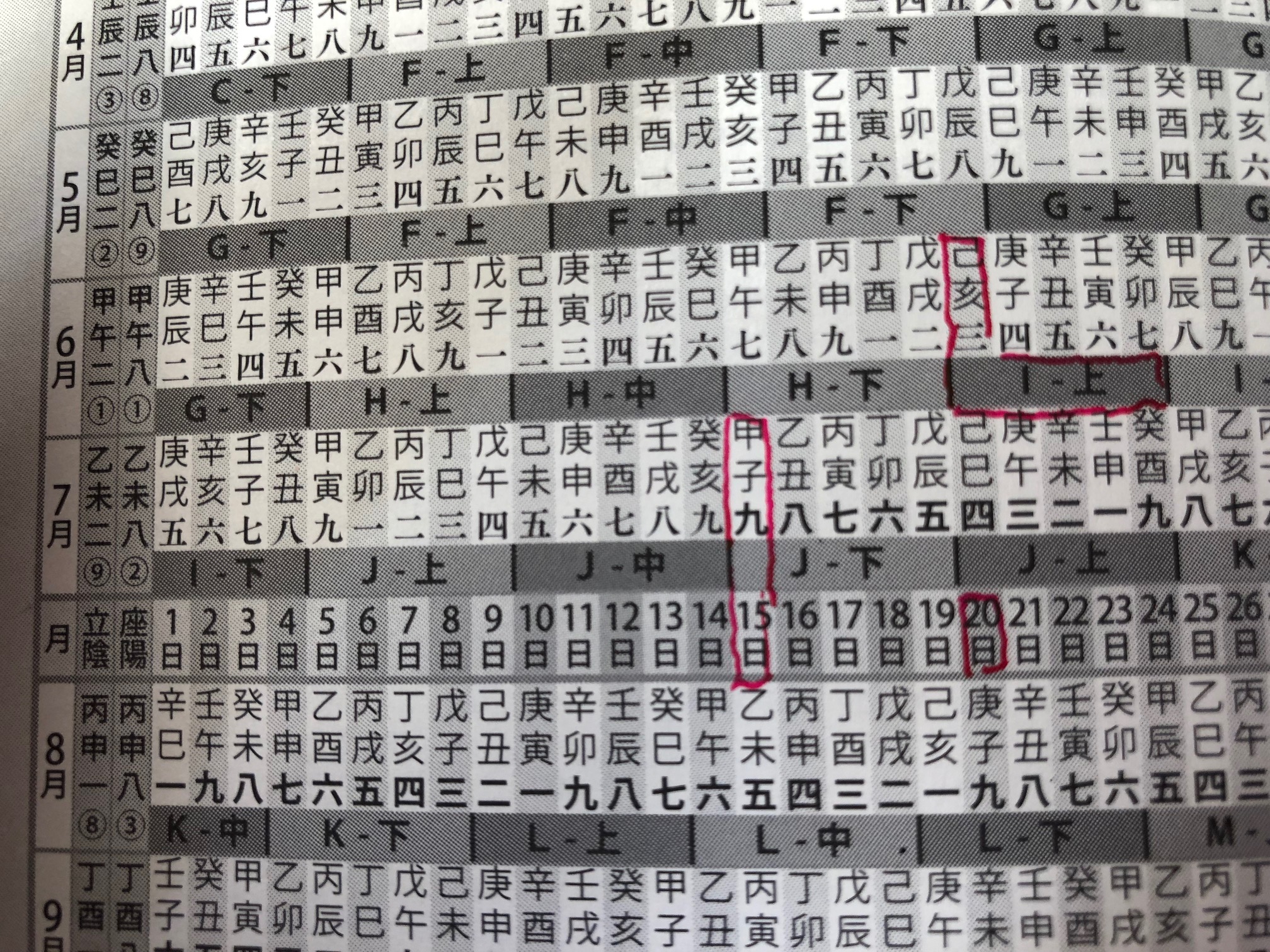 ですから、立向日盤は7月16日までは陽局で方位を見なければなりませんが、立向時盤は6月20日から陰局であります。