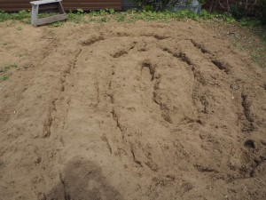 ●十傳より→仰るよーに、小型耕運機では深堀は無理ですが、最初にスコップで深く掘り起こしておりましたし、畝の山を高く盛ることでクリアできるのではないかと…。