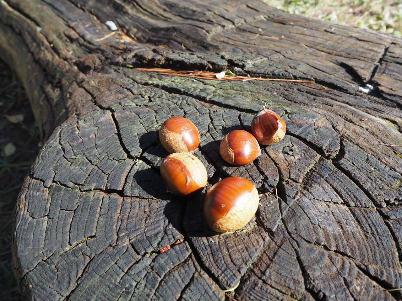 でも、切株にこうして、まるまると肥えた栗の実が、供え物のように置かれておりました。