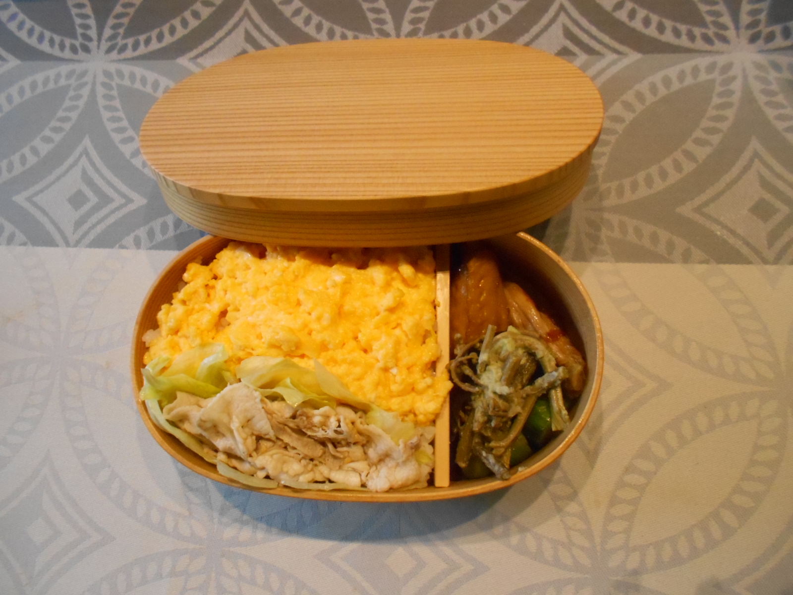 曲げわっばを手に入れたので、弁当をこしらえました。