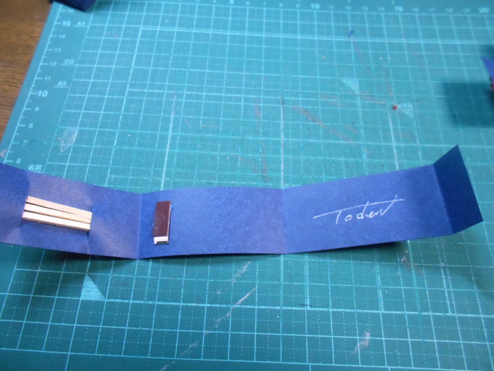 そして、マッチの箱を切って擦り紙をカットし、ウンチの用紙に貼り付けるのでした。マッチの棒の先とは反対に貼られなければなりません。安全のために。