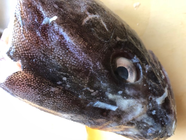 大海を悠然と泳いでいたところを人間の仕掛けた網にかかってしまったのでございましょー。