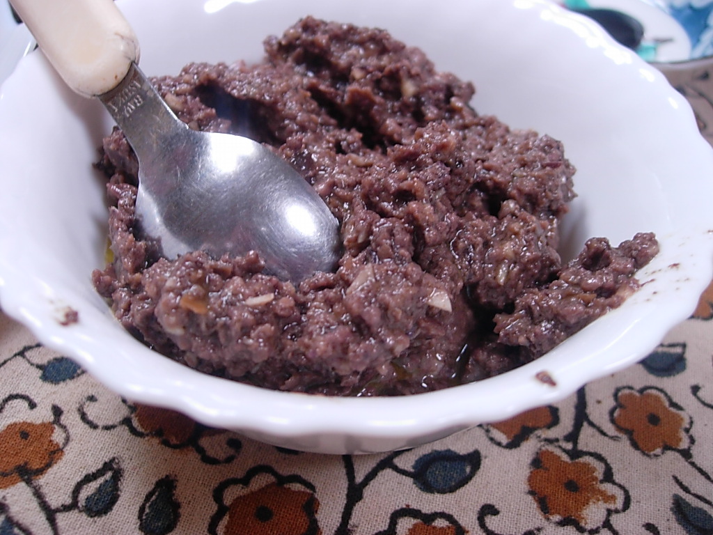 黒オリーブとアンチョビとニンニクとオリープオイルをフードプロセッサーでごちゃ混ぜにした、ソースなのであります。