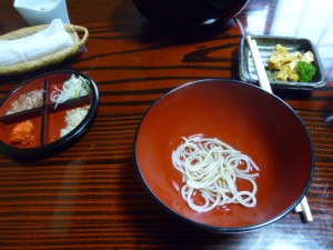その頃、私メはモリオカの八幡町の直利庵で、名物のわんこそばをくっていたのでありました。