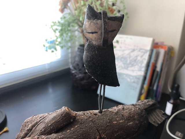 机のミミズクの置物をまえに、仕事に打ち込んでおりました。