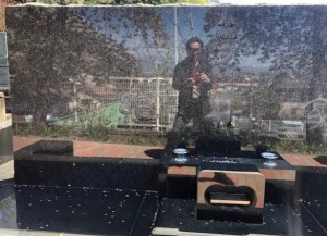 墓石に映った私メでございます。鏡の如く磨かれておる墓石でありました。