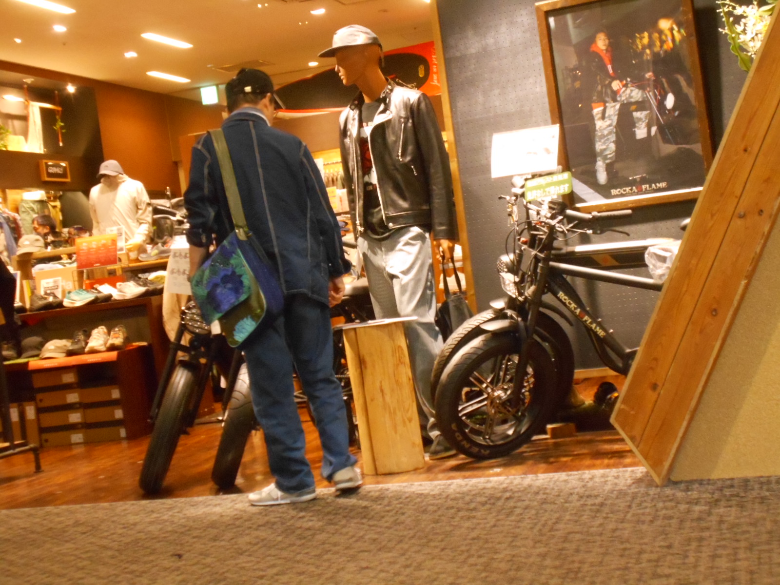 老人が、若い奴ら用のバイクや革ジャンを、食い入るよーに眺めておりました。