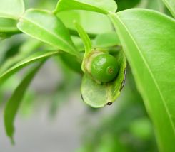 このあいだ白い花をさかせた柚子は、いまはちいさな実をつけています。