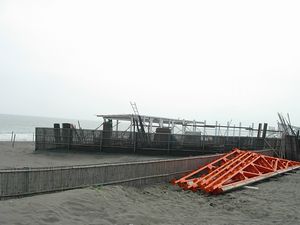 湘南海岸ではいま、恋するケダモノたちのために海の家が急ピッチでたてられております。