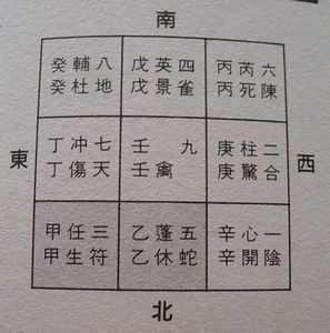 乙は安定を意味します。とくに、この盤だと「休」の漢字があります。これは「休門」であり、平和などを意味が込められております。