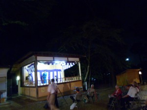 櫓で歌っている歌い手を見ている観客はわずかに五人。酔っ払いのジジイだけであります。