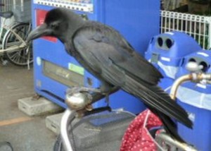 と声をかけたら、カラスはゲゲェ!どす黒い声で威嚇するのでございます。