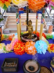 いちおう甘茶を、金属の人形にぶっかけ、手招きされるままに、テントのなかに。