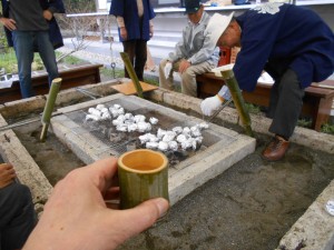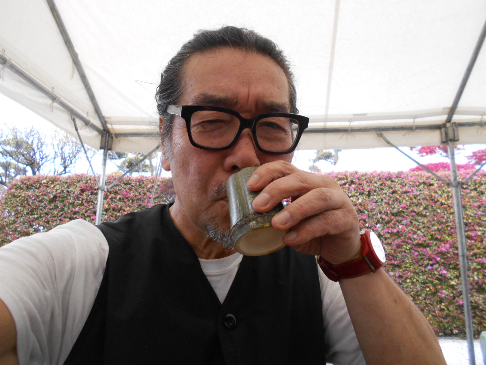 午前10時だというのに、すでに老人たちは竹筒からお酒を酌み交わしておりました。