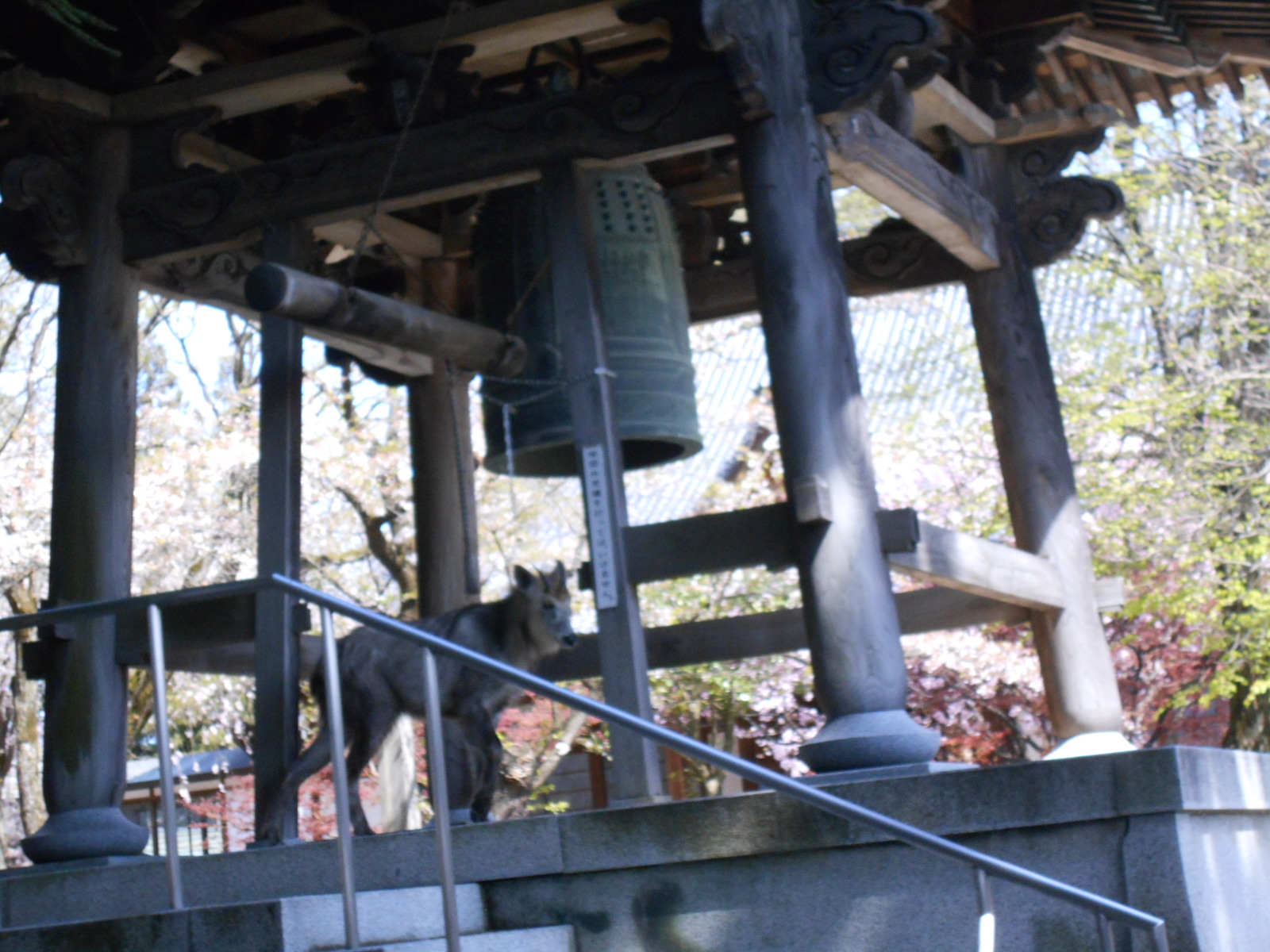 するとカモシカ君は視線をはずし、木に身をこすりつけ、スタスタと歩き出し、こんどは鐘つき堂にのぼって行ったではありませんか。