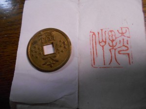 1. カレンダーに付いていた福本銭、使うのが惜しくて残しています。